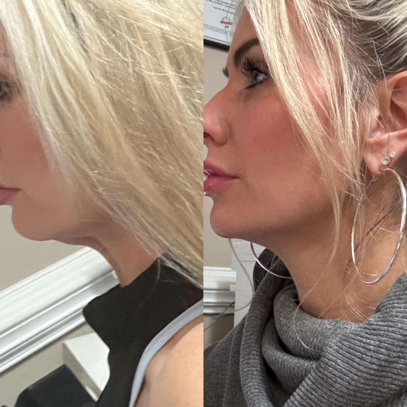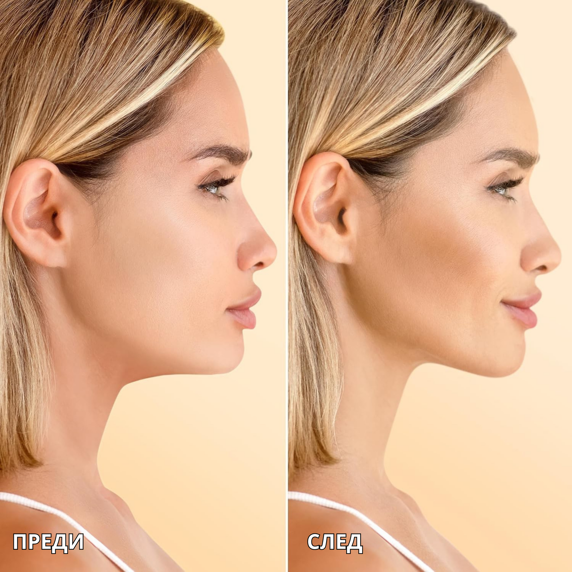 • След 3 седмици: Ясно изразен контур на долната част на лицето и по-гладка, стегната кожа, особено под брадичката.